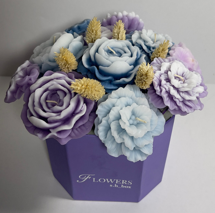 💜💙باکس شمع گل یک انتخاب خاص وجذاب برای هدیه دادن است💙این گلهای شمع زیبابا قرار گرفتن در باکس یاسی جلوه متفاوت به جشن و ومناسبت ها میدهد💙💜