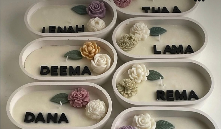 نوع محصول: شمع داخل ظرف چوبی وحروف الفبا با گل