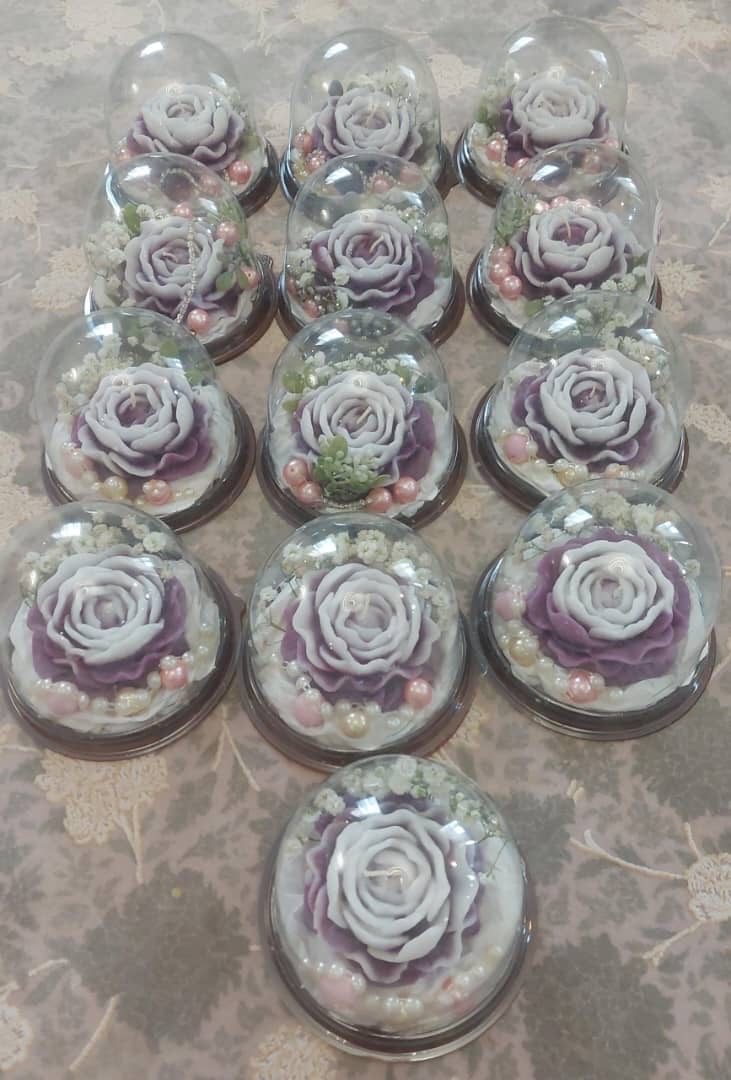 💐💐گیفت شمع گل الاله با تم رنگی سفید وبنفش داخل حباب قرار میگیرد.قابل سفارش در همه رنگها زمان ارسال ۷تا۱۰روز کاری ارسال میشود