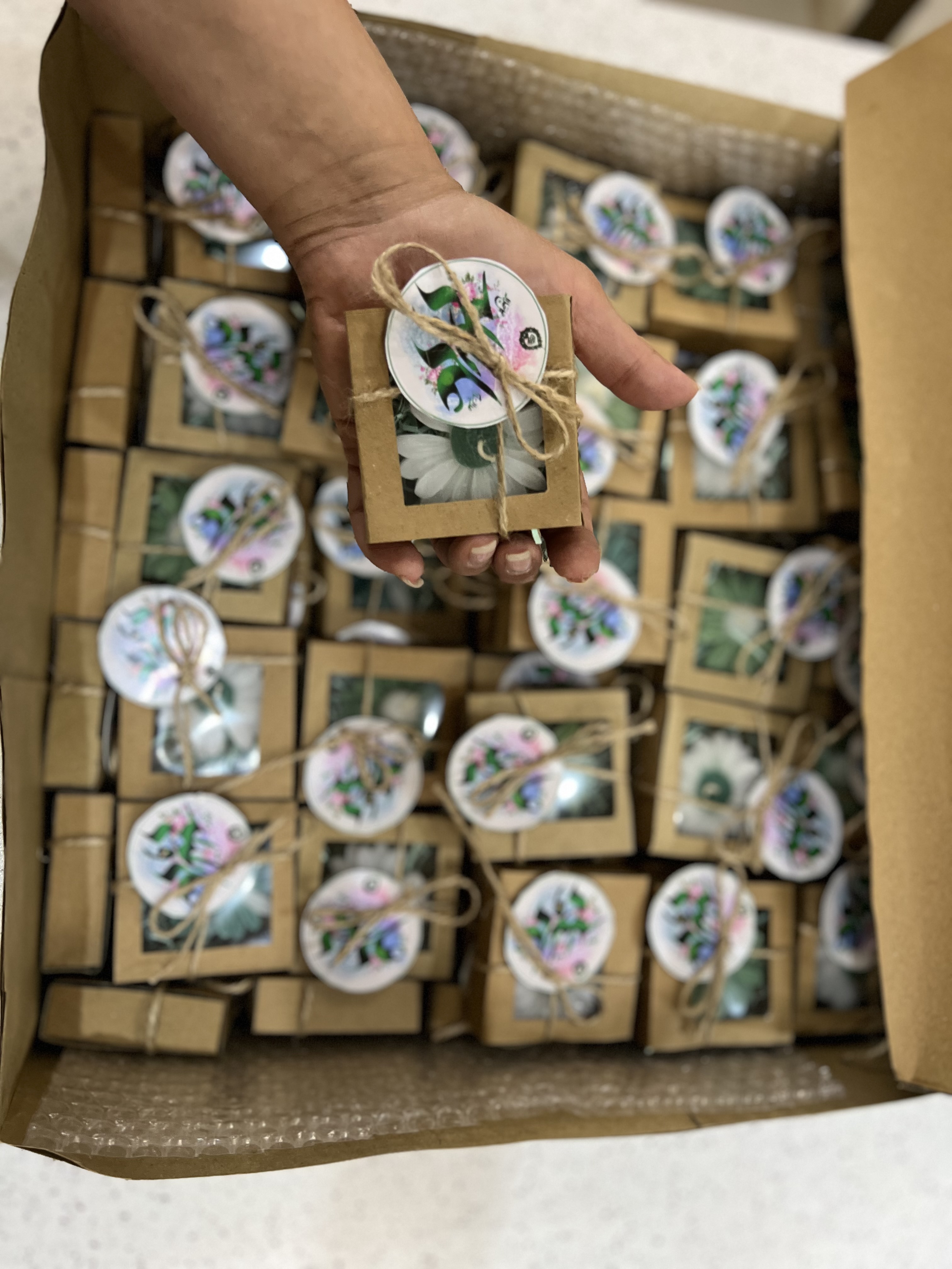 گیفت هدیه گل بابونه با دو رنگ سبز وسفید و قرلر دادن در جعبه های کوچک و با نوارها تزیین کردیم و با برچسب عید غدیر مبارک یک گیفیت بسیار جذاب وخاص شد برای هدیه دادن لست.