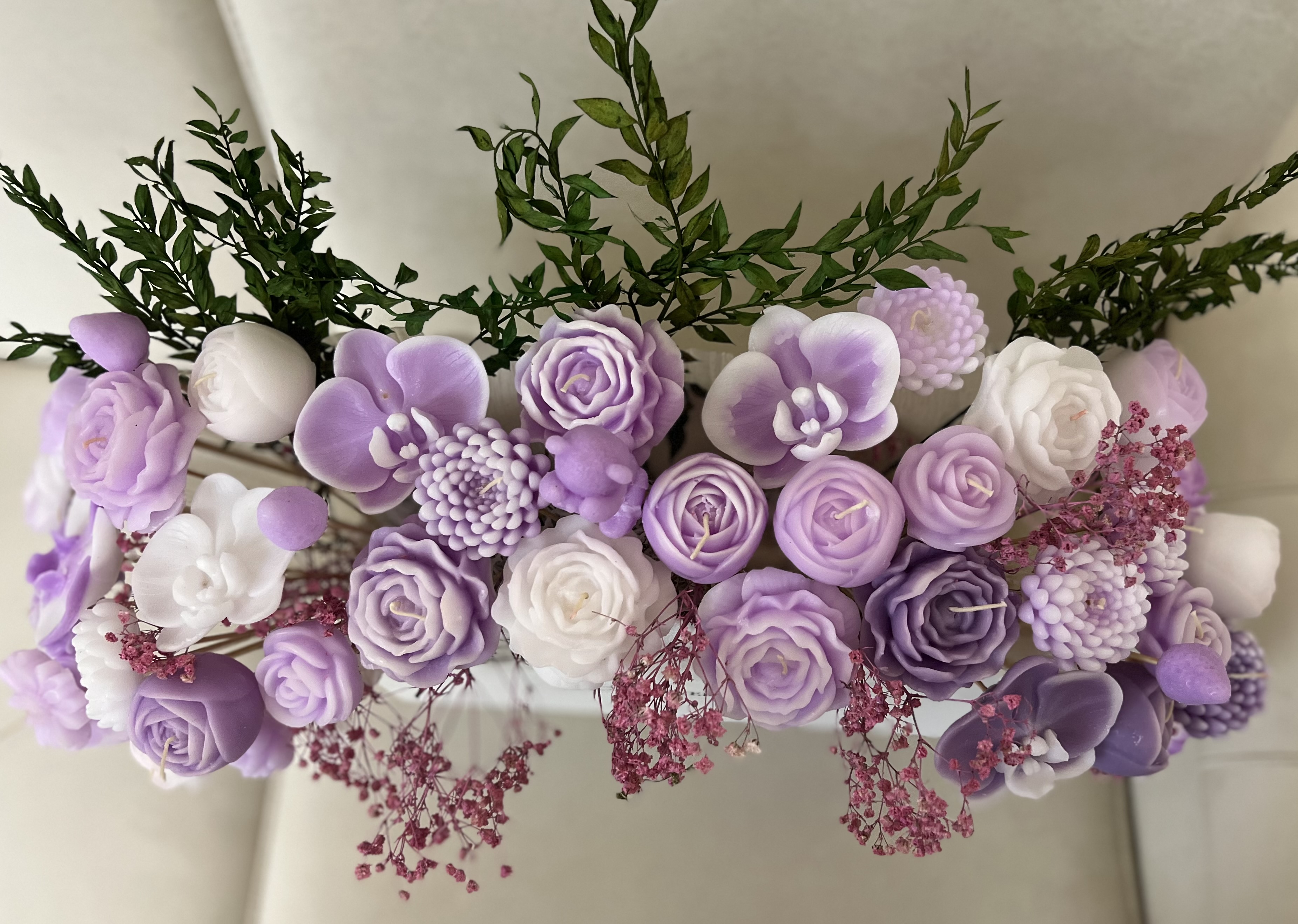 باکس گل شمع یک انتخاب خاصو جذاب برای دکوراسیون هدیه دادن و مناسبت های خاص است.این باکس شمع زیبا با گل های ارکیده بابونه گل رز وبرگ های سبز زیبایی بیشتری به باکس گل یاسی داده