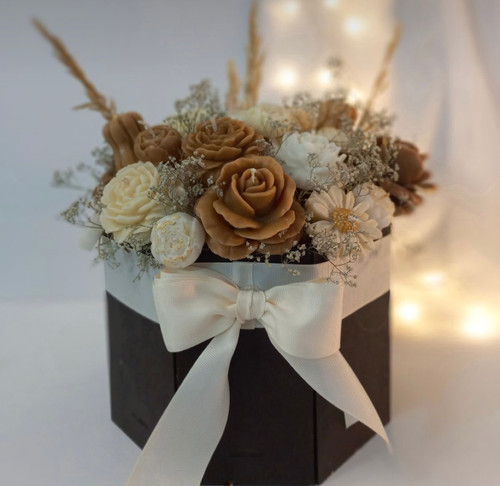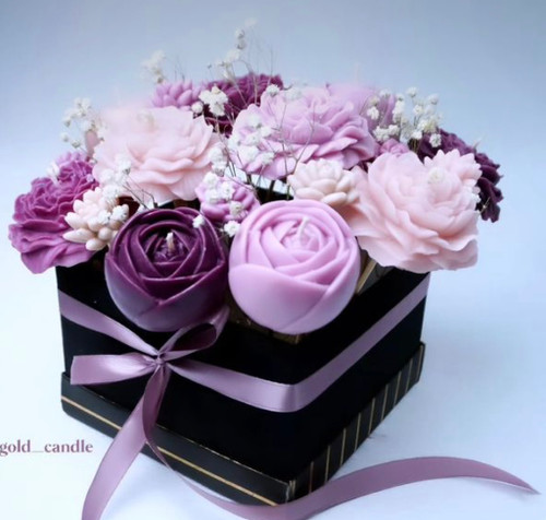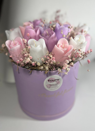 باکس شمع گل بابونه،لاله،پیونی،رز،تدی