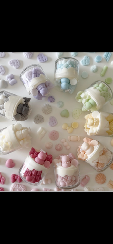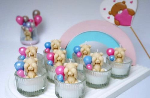 شمع شیشه ای تدی خوراکی و رنگ های پاستیلی