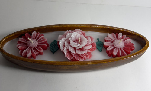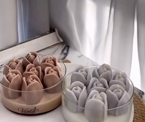 شمع لاله در ظرف چوبی