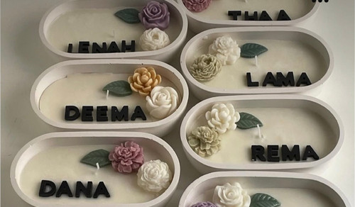 شمع ظرف چوبی با نوشتن اسم لاتین وگل