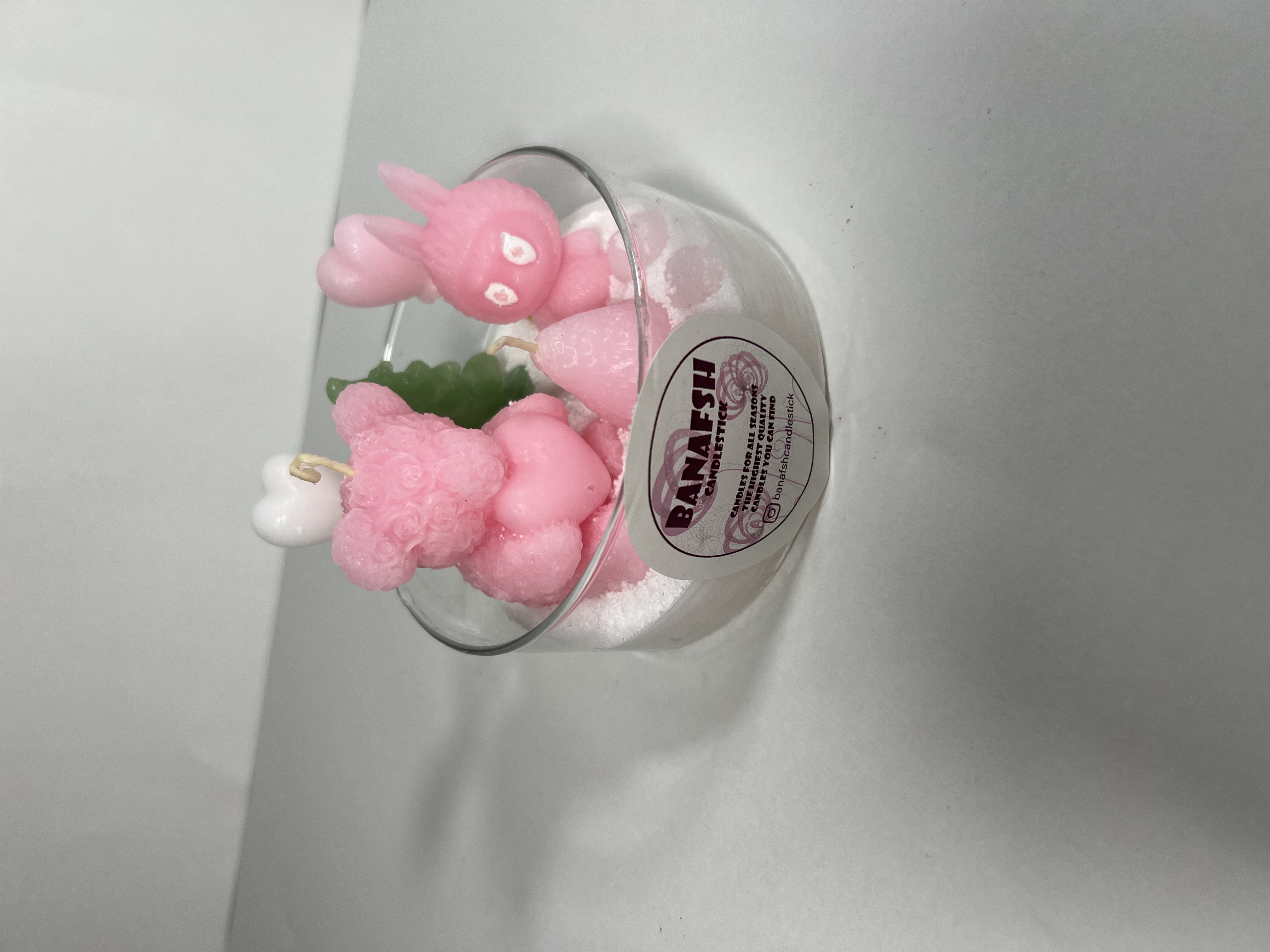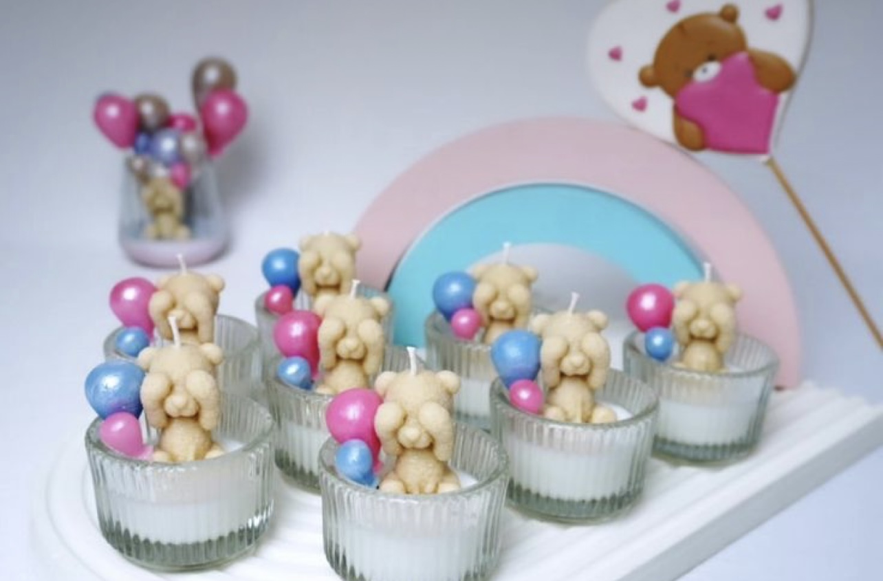 شمع شیشه ای تدی خوراکی و رنگ های پاستیلی