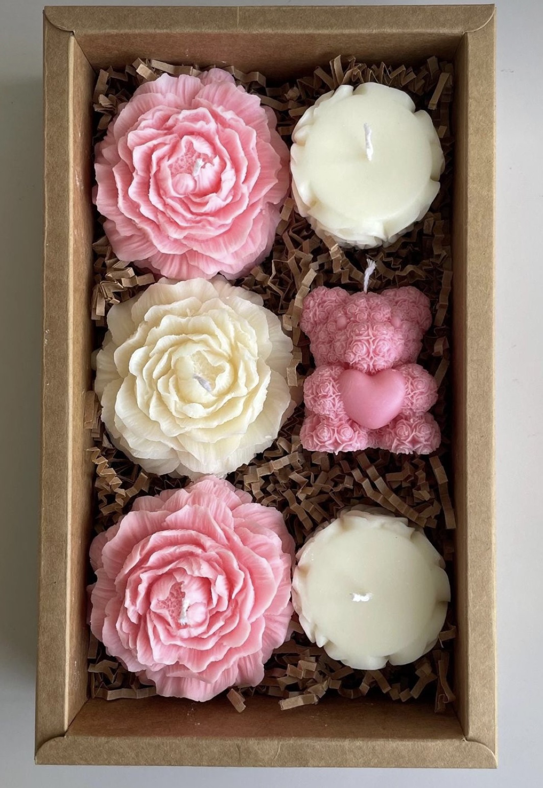 باکس شمع گل بابونه،لاله،پیونی،رز،تدی